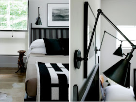 This post on Remodelista yesterday reminded me about this great house that was featured in The New York Times earlier this year. Remodelista shows how to get the look of the classic bathroom in the home of designers Russell Groves and Neal Beckstedt (partners in the NY firm S. Russell Groves). For a full slides how tour of the rest of the East Hampton house, check out the gallery on nytimes.com.I love the contrast of the crisp black and white with the more rustic elements like the old wooden crates and the driftwood lamp. The stainless steel kitchen cabinets have me thinking I might want to reconsider my own plans for white cabinetry. Here are some of my favorite images from the interiors: